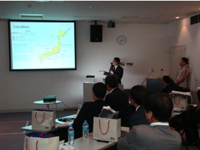 グループ毎に割当てられたテーマにそって参加者がプレゼンを行った。前日にいかに準備をしていたかがプレゼンの内容やグループのまとまりに影響する。アラビア系のグループは、準備には時間を費やしているようであったが、意見の相違が多く見受けられ、国民性を感じた。 夕方からナビスコカップ(ジュビロ vs モンテディオ)の試合観戦を実施。参加者は試合中に熱心にメモをとり、また、試合前後では、スタジアムの雰囲気を楽しんでいる様子であった。 |