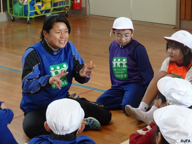 JFAこころのプロジェクトは2014年12月、1都2府25県の48自治体で合わせて197回の「夢の教室」を実施しました。また、公益財団法人日本体育協会、公益財団法人日本オリンピック委員会、一般社団法人日本トップリーグ連携機構とともに行っている「東日本大震災復興支援 スポーツこころのプロジェクト 笑顔の教室」は対象地区5県の18自治体で52回実施しました。