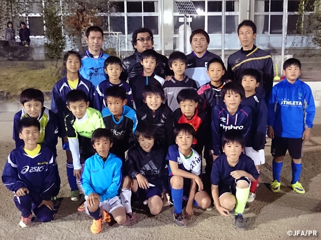 14日は、福島県いわき市のいわき地区U-11/U-12トレセンへ。いわき地区トレセンは2015年の後期から南北に分かれて開催されており、私は南地区のトレセンを訪れました。会場は小名浜西小学校グラウンドで、時間は19~21時の2時間。U-12は「ポゼッション」をテーマに、ユース育成ダイレクターで、JFAアカデミー福島(男子)のサブスクールマスターも務める中田康人氏が指導しました。U-11は私が担当し、「パス&コントロール」を主題に、トライアングルパスから4対2、1+5対5+4サーバーでパス&コントロールの質とオフ・ザ・ボールの時の関わりなどを確認、最後はゲームで締めくくりました。