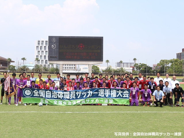 全国自治体職員サッカー連盟より、熊本地震におけるサッカーファミリー復興支援金贈呈