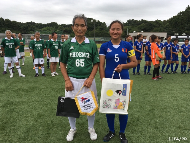 私が日本で所属している「宮城フェニックスサッカークラブ」(60歳以上のシニアチームで会員数が約150名)が、8月29日から9月3日までモンゴル遠征を実施しました。伊藤孝夫団長(86歳)、西巻四郎監督(85歳)以下総勢15名(平均年齢73歳)がはるばるこの国まで渡航し、ウランバートル選抜O-60(60歳以上)、私が指導するモンゴル女子U-14代表、そしてモンゴル日本人会チームと計3試合を行いました。全て敗戦したものの、在モンゴル日本大使館、JICA事務所、モンゴルオリンピック委員会、MFFへの表敬訪問や乗馬体験等と、有意義な海外遠征となりました。ジュニアからシニアまで幅広い年代において、モンゴル-日本間の草の根交流も今後も積極的に取り組んでいきます。