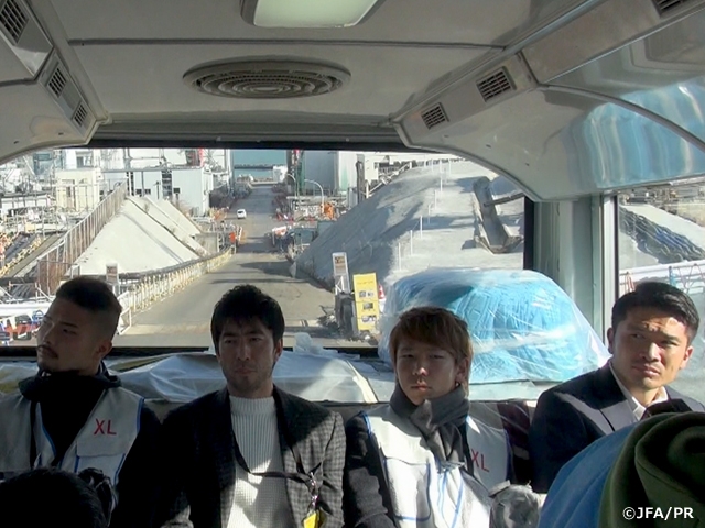 この視察及びサッカー教室の開催は、来年3月までに取りまとめる福島復興支援プログラム(仮称)の策定に向けたものです。選手会、日本サッカー協会及びJリーグが共同で取り組むのは初めてのことで、福島第一原子力発電所にプロスポーツ選手が入構するのも初めてのことでした。