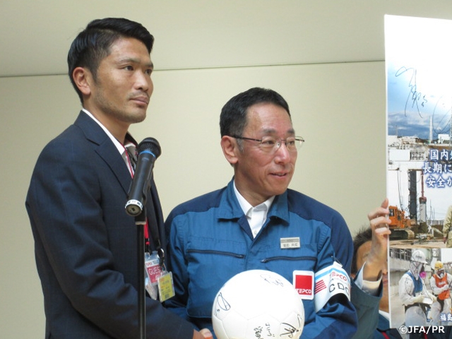 サッカー選手はサッカーをプレーすることが仕事ですが、それだけではなく、少年少女に夢を与えること、社会に貢献すること、とりわけ復興支援は大切な役割だと思っています。福島のみなさんの今を、メデイアからの情報に頼るだけではなく、自分で観て、感じることが大切だと思い、今日訪問しました。福島第一原子力発電所では約6000人の方が働いており、その方々の力で復興に向かっていることを感じました。個人として、サッカー界として何ができるかを考えていきたいです。