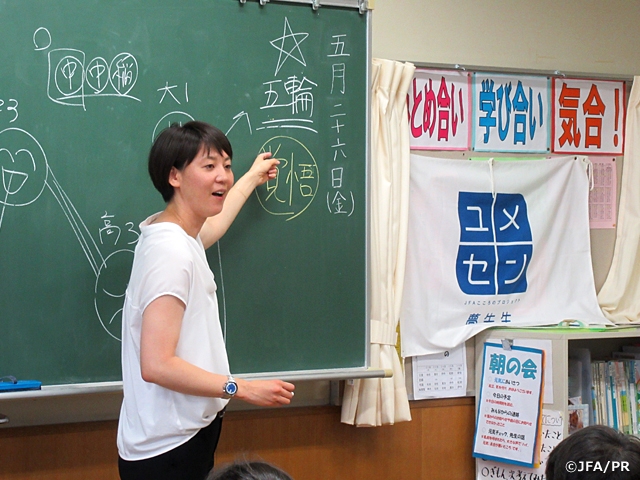 JFAこころのプロジェクトは5月26日(金)、東京都千代田区の小学校で、水泳元日本代表の萩原智子氏を夢先生に迎え、八千代銀行協賛による「夢の教室」を開催しました。