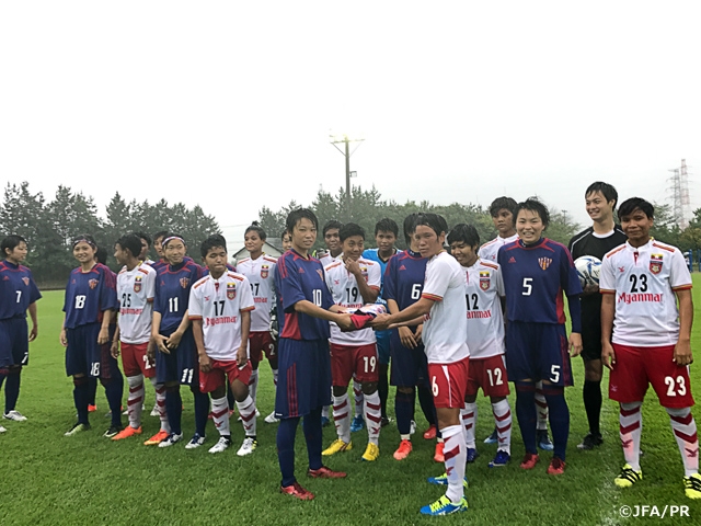7月13日(木)から25日(火)までの13日間、ミャンマー女子代表が新潟県北蒲原郡聖籠町のアルビレッジを中心にトレーニングキャンプを実施しました。今回のキャンプは、今年8月にマレーシア・クアラルンプールにて開催される「SEA Games 2017」に向けたチーム強化が目的であり、計5試合のトレーニングマッチを行いました。滞在期間中には「国際ユースサッカーin新潟」の観戦や、ショッピングを楽しんだりと、オン・オフ共に非常に充実したキャンプとなった様子でした。また、JAPANサッカーカレッジからユニフォームのプレゼントを頂く等、地元新潟の方々の温かい歓迎とご支援を頂きました。