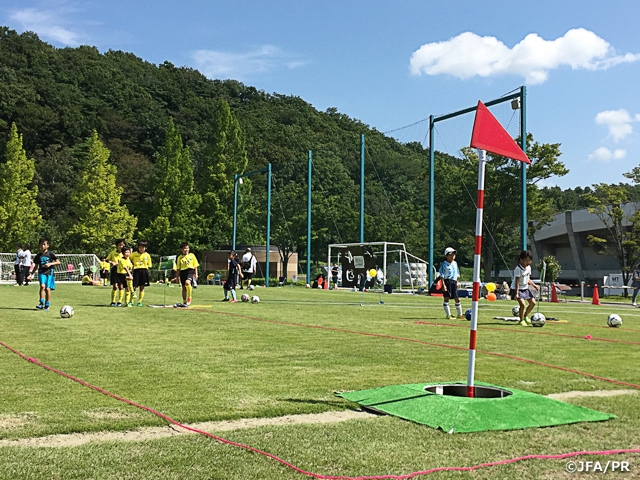 また、サッカーアトラクションコーナーは「誰でも、いつでも参加できる」ことをテーマに、キックターゲット、フットゴルフ、ウォーキングフットボールを開催。子どもの試合の応援に来場していたお母さん、お父さん、おじいちゃんもアトラクションに参加し、ボールを蹴る楽しさを感じている様子でした。