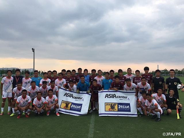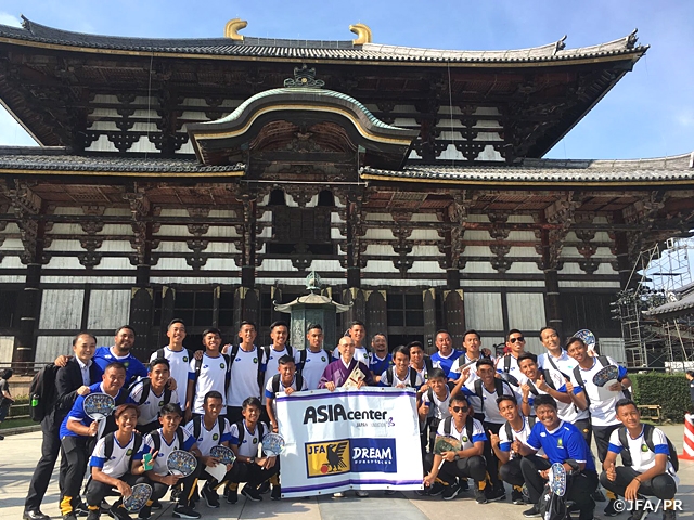 今回の合宿の目的は、9月4日(月)からミャンマーで行われたAFF U-18 選手権に向けた強化で、選手23名、スタッフ5名が来日し、Jクラブのアカデミー2チームを含む計4チームと練習試合を行いました。また合宿期間中には、Jリーグの試合を2試合観戦。サッカー以外でも奈良での座禅体験や大阪心斎橋の観光などを体験しました。