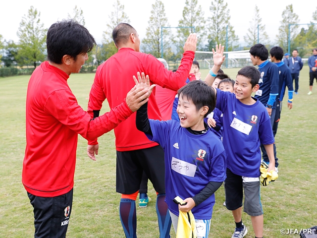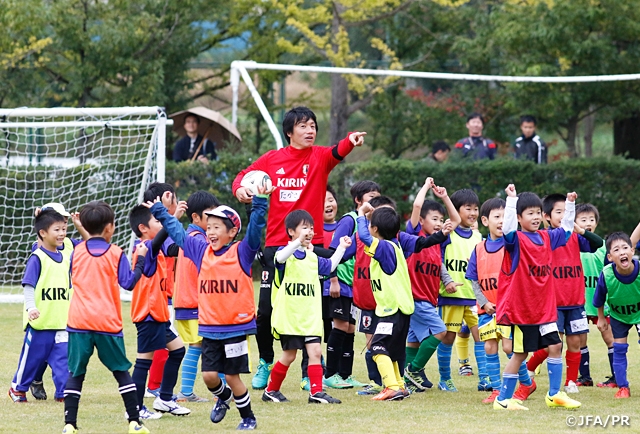 10月14日(土)、JFA・キリンビッグスマイルフィールドが福島県郡山市の西部サッカー場サブコートにて開催されました。これまでは各小学校を巡回し、「JFA・キリンスマイルフィールド」を開催してきましたが、岩手・宮城・福島の各県でより地域に寄り添い“元気づくり”をお手伝いする活動として、さらに進化したサッカーイベント「JFA・キリンビッグスマイルフィールド」を開催することとなりました。
