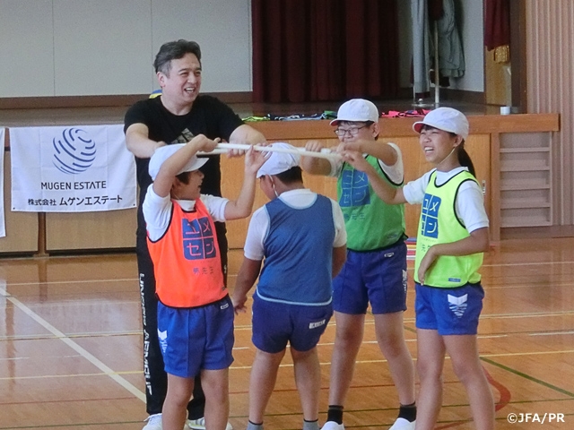 日本サッカー協会(JFA)は9月28日(木)と29日(金)の二日間、株式会社ムゲンエステート協賛による「夢の教室」を京都府福知山市で開催しました。