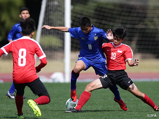 この日は、上記試合のほか、U-16タイ代表 対 U-16シンガポール代表、U-16ベトナム代表 対 U-16ラオス代表の計4試合が行われました。雨風の中、選手たちは気迫あふれるプレーを見せていました。