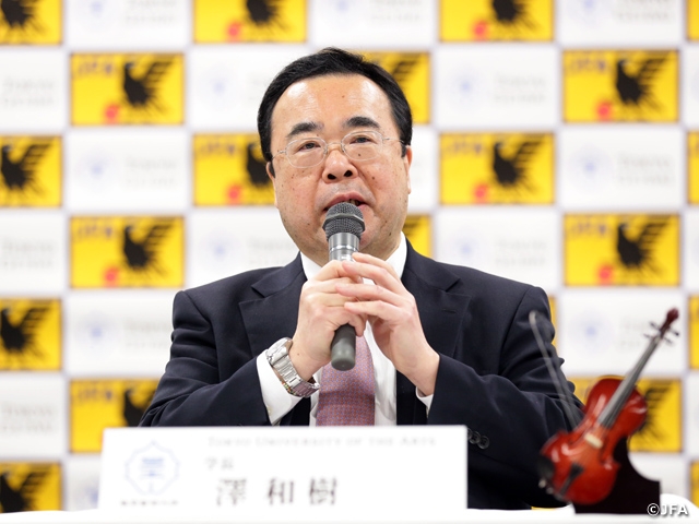 そこでは、革新的であること、多様性であること、国際的であること、この3つのキーワードを掲げました。私自身も「Arts Meet Science」、芸術と科学、医学との融合、ここにスポーツが含まれています。いままでの芸術の伝統を守りつつも、常に新しいものとの出会いを求めていくという姿勢を目指しています。そんな中、美術学部長でもある日比野先生が日本サッカー協会の社会貢献委員長であり、DOORプロジェクトで、芸術と福祉との取り組みという点で、藝大の新しい流れができていますので、今回の日本サッカー協会との連携が非常に活きたものになると思います。このような機会を設けていただいたことに、感謝申し上げます。本日はありがとうございました。