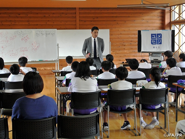 JFAこころのプロジェクト 山形県南陽市で「夢の教室」を実施 元オリンピック競泳日本代表の松田丈志さんが登壇