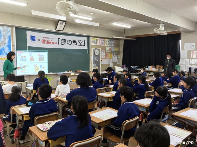 2013年から「JFAこころのプロジェクト」にご支援いただいている西川産業株式会社では、全国の西川チェーン専門店が地域への社会貢献として「夢の教室」を主催してきました。