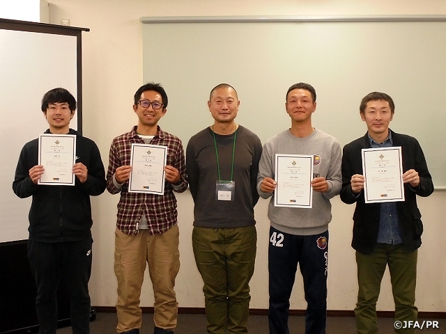 インストラクターは、昨年に引き続き、坂口淳氏が担当。受講生は5名でしたが、青森県、秋田県、岩手県と北東北から広く来ていただきました。年代も20代から40代と幅広く、障がい者サッカーや、社会人チーム、少年団など、様々な環境の中で活躍している方々の参加でした。