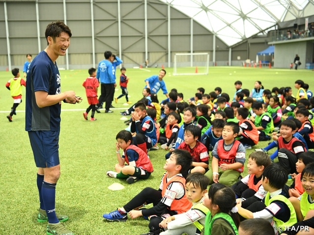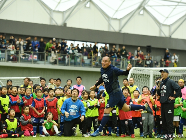 「JFA・キリン ビッグスマイルフィールド」は、被災地復興プロジェクトの一環として岩手・宮城・福島の小学校で行ってきたサッカー教室「JFA・キリン スマイルフィールド」を、より地域に寄り添い“元気づくり”をお手伝いする新しい取り組みに進化させたもので、2017年から今年で3年目を迎えます。今年2回目となる「JFA・キリン ビッグスマイルフィールド」は、今年4月にグランドオープンを果たした、サッカーの聖地であり復興の象徴・Jヴィレッジで行われました。