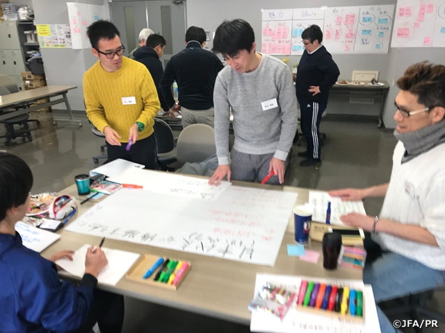 インストラクターは、鈴木惠朗氏(松江シティFC株式会社/SMCサテライトインストラクター)が担当、17名の受講生が「ビジョン/環境分析/コミュニティデザイン/SWOT/行動計画/目標管理」計6セッション(全18時間)を受講しました。