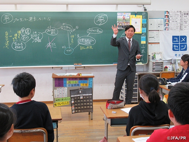 JFAこころのプロジェクト「夢の教室」の2019年度の活動は、新型コロナウイルスの影響もあり2月末、3月に実施予定だった25クラスの授業が、中止及び一部延期となり2月27日(木)に行われた沖縄県名護市大宮小学校の授業をもって終了しました。
