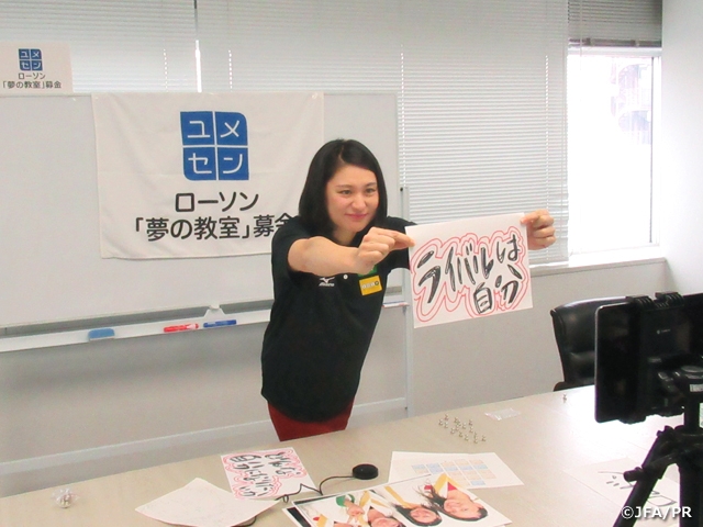 JFAこころのプロジェクトでは、昨年より支援企業となった株式会社ローソンによる「夢の教室」募金を使った夢の教室を新型コロナウイルス感染拡大防止のため、オンライン形式で実施しています。