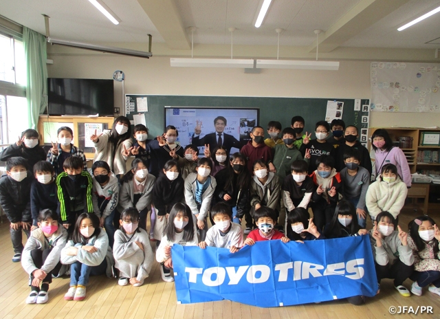 JFAこころのプロジェクトは1月20日(水)、21日(木)の2日間、TOYO TIRE株式会社の支援による「夢の教室」オンラインを、同社の本社がある兵庫県伊丹市の南小学校で開催しました。同社は2019年よりこころのプロジェクトの支援をスタートし、今回が初の「夢の教室」冠授業開催となります。