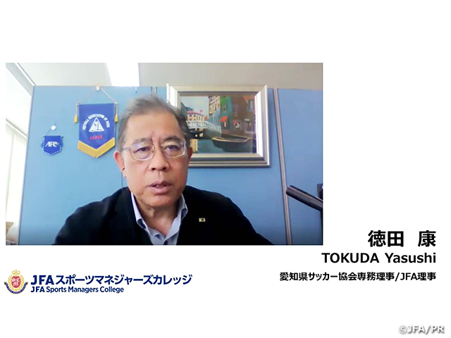 徳田:大学を卒業後教員となり、チーム・選手指導の経験を経て、愛知県サッカー協会(以降、愛知県FA)で技術委員としてトレセンや国体選抜などに携わってきました。キャプテンズミッション(CHQ)の策定に伴い、総務委員長に就任し、2005年度SMCを受講。その後、専務理事に就任しました。SMCでは組織の基盤を学び、愛知県FA内での重要性を再確認できました。この学びを活かして、専務理事として愛知FAの組織運営をしてきました。PDCAをしっかりまわすことが、愛知県FAの基盤強化にもつながり、そうした観点で組織をみて、運営できる人材が必要となっており、人材の発掘と養成に取り組んでいます。