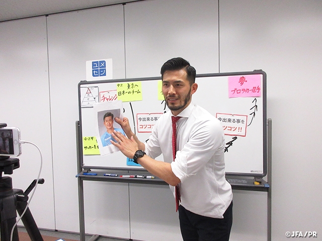 4月からJFAこころのプロジェクトの担当になり、今回学校で子どもたちと一緒に初めての「夢の教室」を体験しました。なにより素敵な授業に驚きました。