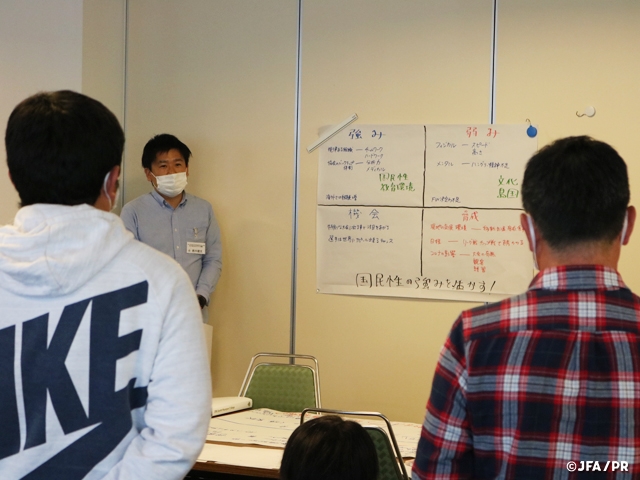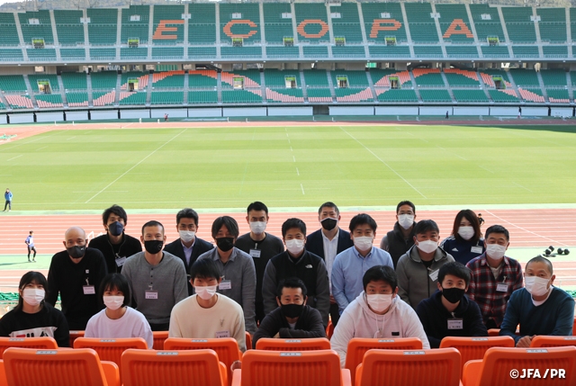 JFAスポーツマネジャーズカレッジ(SMC)サテライト・オンライン講座を静岡県のエコパスタジアム特別観覧室で開催しました。インストラクターは坂口淳氏が務め、19名の受講生が新型コロナウイルス感染症対策を徹底しながら、「ビジョン・環境分析・コミュニティデザイン・SWOT・行動計画・目標管理」の計6セッション(全18時間)を受講しました。Jクラブのスタッフや学生など、様々な年代の多様な組織の方々が受講され、これからの地域のスポーツを支えていくために必要なことを一緒に学びました。
