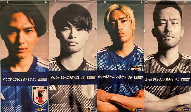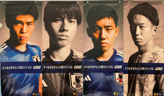 返礼品には、昨年「新しい景色を2022」のプロモーションで使用した屋外フラッグや写真パネル、サッカー日本代表オリジナルフォトなどをご用意しています。スタジアムやご自宅からご参加いただき、多くの子どもたちをスタジアムに招待しましょう。