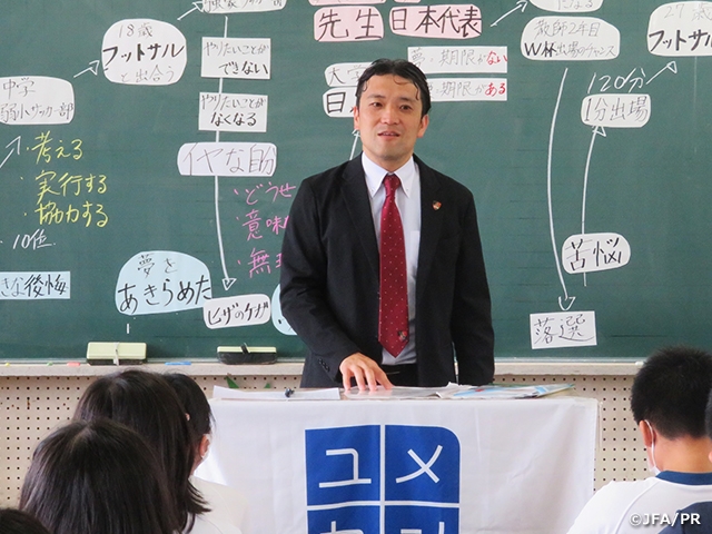 「ZOJIRUSHIユメセンサーキット」は、子どもたちに「夢を持つことの大切さ」を伝えるJFAこころのプロジェクト「夢の教室」に加え、象印マホービンの推進する「熱中症対策(水分・塩分補給の大切さ)」啓発活動を2013年より毎年行っています。アフターコロナといえども、まだマスクを着用している児童もいるなかでしたが、マスクの下から笑顔が感じ取れ、夢先生と児童の一体感が伝わってきました。教室での「トークの時間」では、積極的に質問や意見が出ており、児童がいきいきとしている様子をとても嬉しく感じました。それと共に、夢先生の児童目線でのわかりやすい表現が、児童の共感を生んでいるとひしひしと伝わってきました。弊社の若手社員も授業を見学させていただき、皆、良い経験をさせていただいたと感銘を受けていました。この活動は今後も継続して実施していきたいと思います。