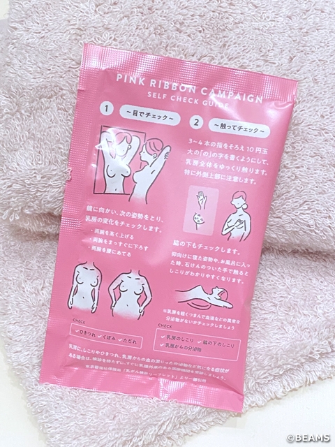 乳がんへの理解と支援を表すピンク色のリボンが世界各国で掲げられる10月は、乳がん啓発月間(Breast Cancer Awareness Month)として毎年様々な活動が行われています。なでしこジャパンのアパレルプロバイダーであるBEAMSでも2017年より毎年10月にピンクリボンキャンペーンを実施し、乳がんに関する理解とブレスト・アウェアネスを呼びかけています。日本の女性が最もかかりやすいがんが乳がんで(*1)、早期のうちに発見することで治りやすい(*2)という現状を受け、まずは乳がんを正しく理解するための情報発信と、日常的に胸の状態を意識するブレスト・アウェアネスの習慣を身につけるためのきっかけ作りに、BEAMSの店舗、公式サイト、SNSなどを通して取り組んでいます。