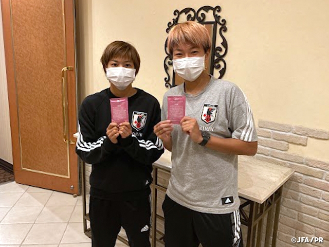 なでしこジャパンもピンクリボン運動に賛同し、トレーニングキャンプの際にはピンクリボンピンバッチの着用などを行っており、また選手たちにはBEAMSの店舗で配布されている入浴剤が届けられました。