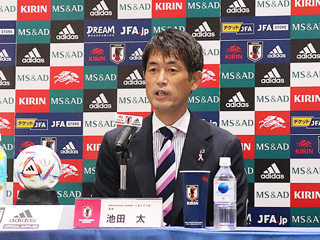 なでしこジャパンメンバー発表会見でピンクリボンバッジを着用