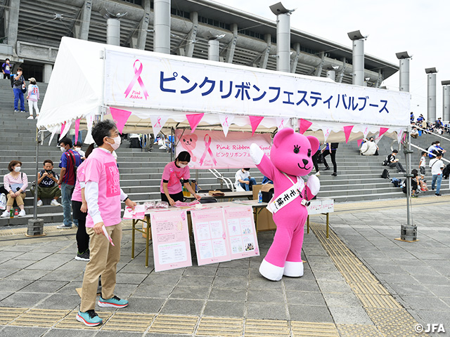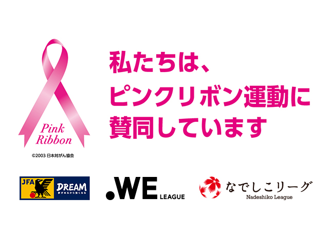 日本サッカー協会(JFA)は、一般社団法人日本女子サッカーリーグ(なでしこリーグ)と共に、乳がんの啓発活動である「ピンクリボン運動」に賛同し、「ピンクリボン月間」となる10月に行われる各種事業において同活動の啓発に取り組んでまいります。