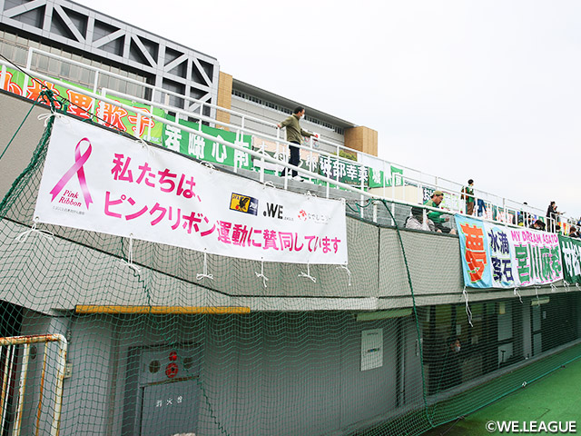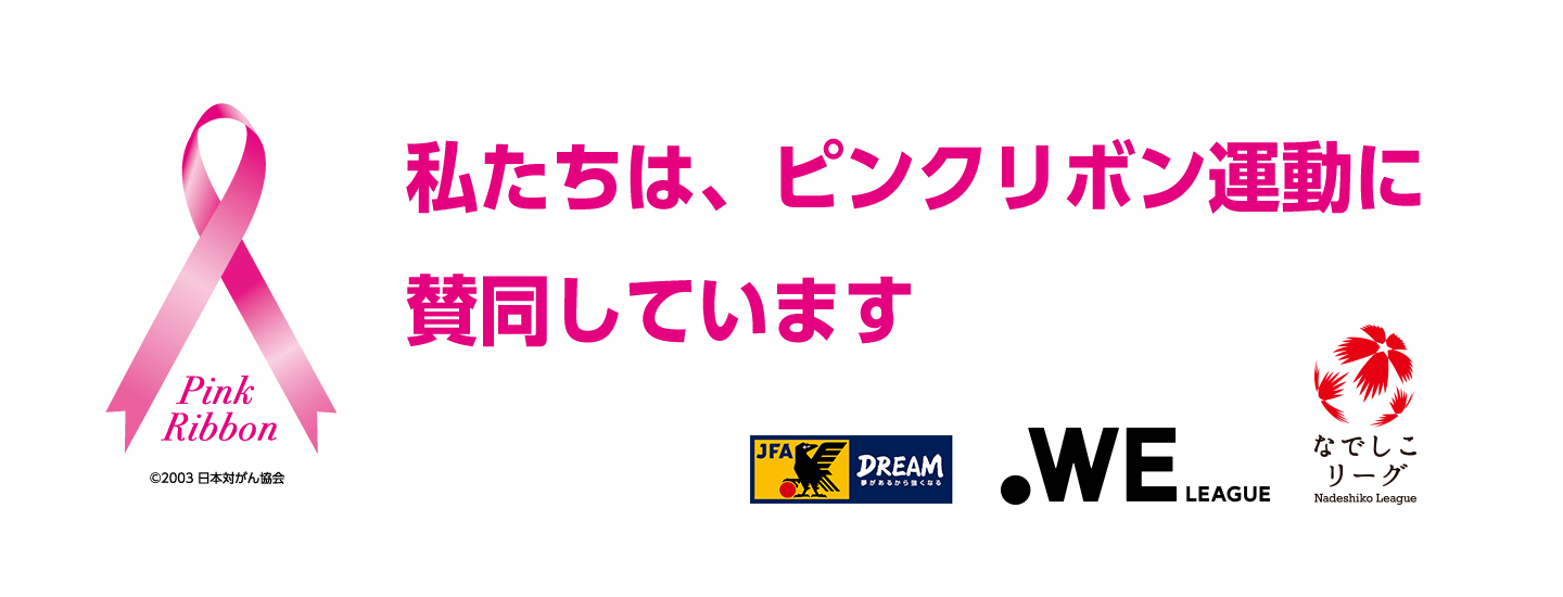 WEリーグ、なでしこリーグ各会場でピンクリボン賛同バナーを掲出一人でも多くのサッカーファミリーに乳がん啓発を周知するため、女子サッカー界全体を通して、ピンクリボン運動を行います。詳しくはこちら