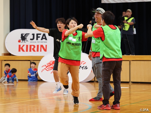 あと、JFAとキリンさんは昨年5月から、復興支援プロジェクトの一環として「JFA・キリン ビッグスマイルフィールド」を被災地で開催されていますが、その1回目が能登町だったんですね。役場の職員として、たまたま私が初回の対応をさせていただき、関係各所と連絡調整しながらイベントを実施することができました。当日は子どもから年配の方まで参加し、サッカー経験問わず、皆さん笑顔で楽しそうに体を動かされていたのが印象的でした。元サッカー日本代表の巻誠一郎さんも明るくみんなを楽しませてくださって、こうして支えてくださる人たちがたくさんいるのだと実感し、感動したのを覚えています。