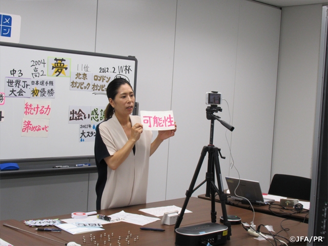 JFAこころのプロジェクトは、7月13日(火)に長野県高森町の高森南小学校で、小学校5年生の2クラスで「夢の教室」オンラインを実施しました。