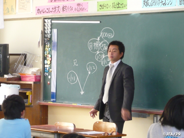 田谷 スタートは東日本大震災の翌年です。小美玉市は海沿いではないのですが、茨城県内でも被害が大きかった沿岸地域で、日本サッカー協会などにより復興支援の目的で開催されていたスポーツこころのプロジェクト「笑顔の教室」※で子どもが笑顔を取り戻しているという話が伝わってきました。子どもたちはゴールデンエイジと呼ばれる身体能力や運動能力が著しく発達する時期でもありますので、夢の教室をぜひ当市でも実施していただきたいということになりました。