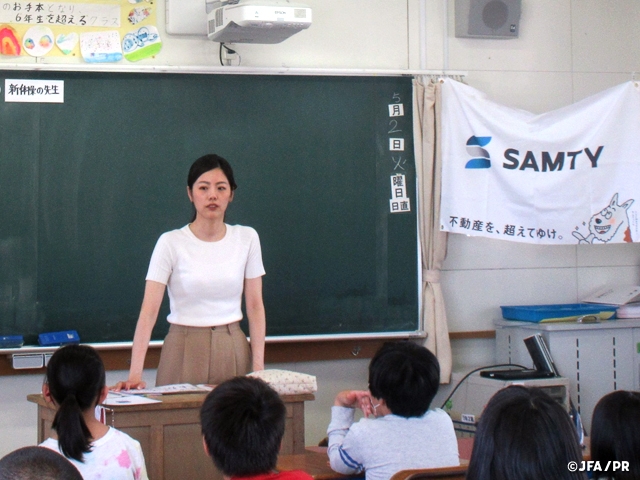 JFAこころのプロジェクトは5月2日(火)、サムティ株式会社協賛による「夢の教室」を、福岡県福岡市立席田小学校の5年生2クラスを対象に実施しました。サムティ株式会社協賛による「夢の教室」は3年目となり、初めての対面実施となりました。