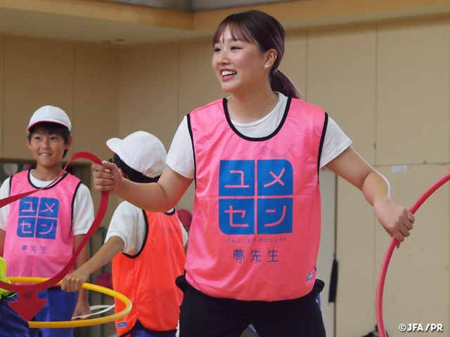 2006年からスタートしたJFAこころのプロジェクトにおいて、「夢の教室」を受けた児童が成長し、今回初めて「夢先生」として登壇しました。