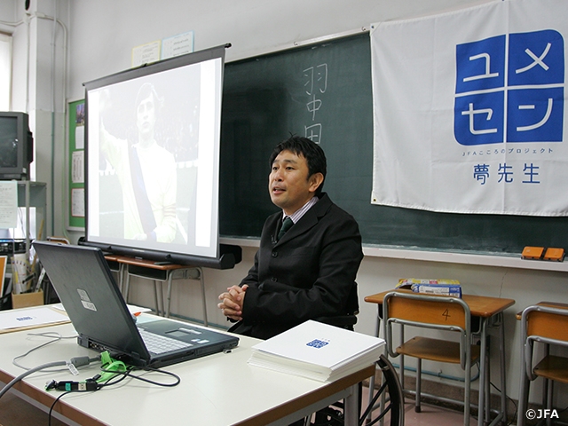 写真は品川区の小学校で夢先生を務めた、サッカー指導者の羽中田昌さん