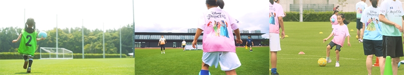 JFAファミリーサッカーフェスティバル“First Touch”のサッカー教室で行われる、このイベントのために作られた90分間のプログラムの多くは、参加者がペアで取り組む内容で構成されており、基本的な身体の動かし方からキックやシュートの練習、ミニゲームなどを通して、楽しくサッカーボールに触れることができます。これまでの経験がなくても、サッカーの楽しさや面白さを知っていただくきっかけになることを目指しています。また、「プレーランド」で使用するカラーコーンやゴールには、本イベントオリジナルのデザインが施され、ディズニープリンセスの世界観の中で、新たな挑戦の一歩を、楽しく踏み出せるように工夫をしています。