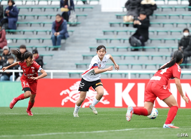 高円宮妃杯 JFA 第30回全日本U-15女子サッカー選手権大会は12月27日(土)、東京都の味の素フィールド西が丘で決勝を行い、INAC神戸テゾーロ(関西2/兵庫)と三菱重工浦和レッズレディースジュニアユース(関東1/埼玉)が対戦しました。
