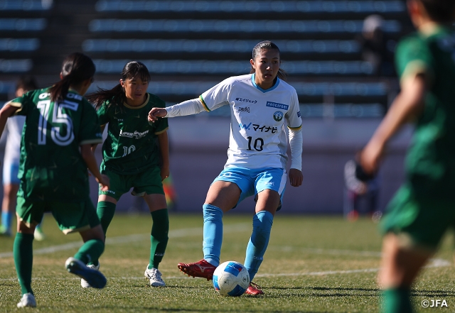 これで流れをつかんだ仙台LYは後半の立ち上がりも主導権を握ろうとしましたが、「ボールを奪ったあとにパスをつなげず、リズムを崩してしまう部分もあった」と渡邊衣織選手が振り返ったように、なかなかゴール前までボールを運ぶことができません。対するメニーナは劣勢の中でも61分に西尾咲希選手、64分に松岡瑛茉選手が効果的に追加点を奪い、相手を突き放します。