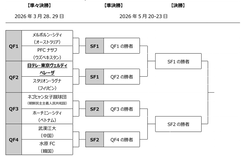 AFC女子チャンピオンズリーグ 2025/26の組み合わせ抽選会が1月15日(木)に行われ、ノックアウトステージの組み合わせが決定しました。日本からは日テレ・東京ヴェルディベレーザが参加します。