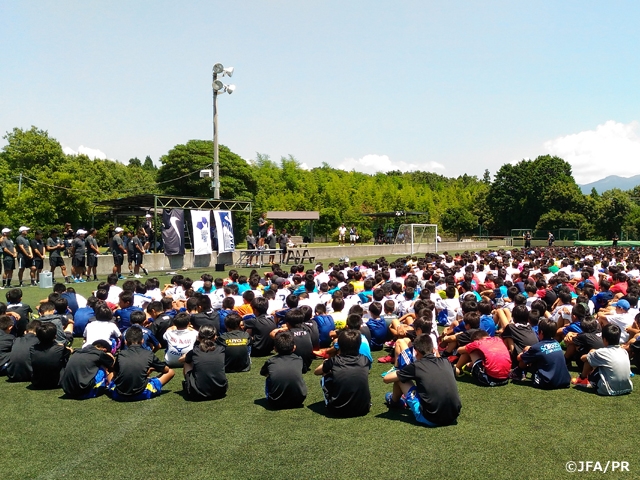 今年で2回目となるFFPは、47都道府県から16名ずつ(東京は32名)、合計768名の選手が選抜され、富士山の麓「時之栖」で開催されました。開会式では選手皆に「フェアでタフでたくましいプレー」を目指し、戦ってほしいというお願いをしました。ゴールを奪うために、ゴールを守るためにボールを挟んでたくましい戦いが随所に見られました。倒れてもすぐに立ち上がりボールを追いかける。倒れている相手に手を差し伸べて、肩を叩き合うといったフェアなシーンも多くありました。指導者の方々も、積極的にそうしたプレーを促してくれました。選手たちには、今回FFPに参加するにあたって抱いていた都道府県を代表しているという気持ち、その気持ちの入ったプレーを自チームに戻ってからも続けてもらいたいと思います。同時に、もっとプレーの質にこだわってほしいと思います。それを日常として、普通のこととしてチームの仲間と一緒に、更なる向上を目指して取り組んでほしいと思います。