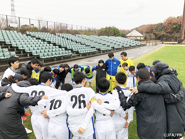 12月18日(水)にスタートした2019JFAエリートプログラムU-13フューチャーキャンプ後期の全日程が終了しました。フューチャーキャンプの目的は9月以降生まれの選手に刺激を与えることで、様々なトレーニングや練習試合に加え、練習試合後のゲーム分析ディスカッション、各スタッフからのレクチャーなど多角的に成長を促す機会となっています。今回はU-15/U-17日本代表のコンディショニングコーチである小粥智浩氏や、川岸正周ドクターからコンディショニングの重要性に関するレクチャーが行われ、選手達は自分で栄養面を考えて食事を取っている姿がとても印象的でした。また山崎雅人コーチからは自身のプロ生活を通して学んだことを話していただき、『夢』について改めて考えるきっかけになったと思います。トレーニングの成果を試す、そして課題を抽出する絶好の機会となった練習試合では、2日目にJFAエリートプログラムU-13と対戦し1-5(0-0、1-2、0-3)で敗戦してしまいました。ですが選手達はそれぞれの課題を感じることができ、その後のトレーニングをさらに充実させるものになりました。最終日にはこのキャンプの集大成として大分トリニータU-14と対戦し、5-5(0-3、0-2、5-0)での引き分けとなりましたが、トレーニングでの成果を目一杯発揮してくれました。この5日間の活動を通じて、選手達がたくさんの刺激を感じ、今後さらなる成長を遂げてくれることを期待しています。今回、会場を提供してくださった関係者の皆様、トレーニングマッチでお相手をして頂いた皆様、選手を派遣して頂いた所属クラブ関係者の皆様に心より感謝致します。