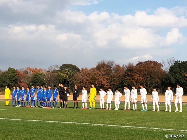 2019年度最後の活動となったU-13エリートプログラムを大分スポーツ公園で行いました。期間中はトレーニングを積み上げながら、U-13エリートフューチャーとアビスパ福岡U-14とのトレーニングマッチを行い、1勝1分で終えることができました。このキャンプにおいては、オンザピッチでは自分の100%を出すこと、積極的にチャレンジする中で常に攻守に関わり続けることや、ゴールを意識した中でのプレーの質の追求を目指しました。オフザピッチではトレーニングやゲームの分析を行い、自分のできたことや、さらに高めていきたいことなどを確認しながら積み上げていきました。また今回のキャンプはエリートフューチャーのメンバーと同じ会場で行ったことで、お互いに良い刺激を受けていました。また、帯同コーチの松岡仁司氏や帯同ドクター川岸正周氏のレクチャーなど、大いに参考になった様子でした。このようなプログラムを通じ、自立した選手に向けてのきっかけになったと思います。特に2戦目となったアビスパ福岡U-14とのゲームでは、1学年上の相手に対しても判断を伴いながら的確で意図的なアクションを多く起こしていたことは、選手たちの成長を表していました。このキャンプで経験したことや感じたことを日常に持ち帰り、さらに高めていってほしいと思います。また、今回のプログラムが今年最後の活動となりましたが、引き続き所属チームと連携しながら選手の育成を行っていきたいと考えています。