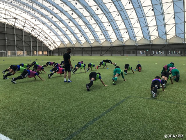 多くの関係者・選手所属チーム・所属学校・保護者のご協力とご理解のもと、全国各地から選抜された25選手が4日間トレーニングを行うキャンプで、期間中はトレーニングや練習試合、レクチャーなどさまざまなプログラムが行われます。今回のキャンプでは新型コロナウイルス感染拡大予防対策として、SmartAmp法による検査で選手・スタッフの陰性を確認し、活動中もより安全で安心な環境作りに努めています。