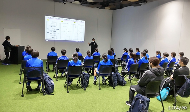 その夜には、U-16日本女子代表の白井貞義監督のレクチャーを実施。今後の代表活動の説明や現在活動をしているU-16日本女子代表候補メンバーに、共に2年間一緒にエリートプログラムに参加していたメンバーから既に選出されていることを説明。U-16日本女子監督から、「君たちにもチャンスはある」と伝えられ、自分たちの目指す目標が明確になり、いい刺激となったようでした。