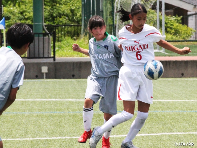 当日は晴天に恵まれ、強い日差しのなかではありましたが、新潟県、長野県、富山県、福井県、石川県の参加選手88名は交流戦、JFAコーチ指導によるトレーニングに元気に取り組みました。レクチャーの時間も設け、プレーについて、水分補給、栄養、相手をリスペクトすることの大切さなど、これからサッカーをしていくなかで必要となる情報に耳を傾けました。また今回、交流戦の審判は各チームからの帯同審判制とし、5名の帯同審判が選手たちの熱い試合をリードしてました。試合の合間には審判インストラクターのもとミーティングやトレーニングの時間を設け、審判の基礎知識について学ぶ機会となりました。