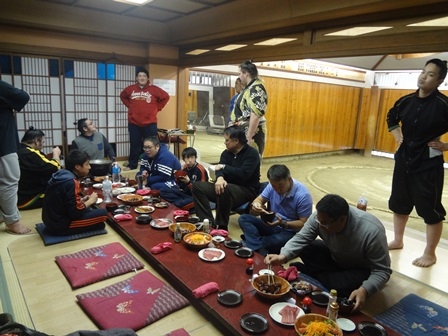 16時から部屋の掃除やちゃんこ作りを始め、夕食となります。